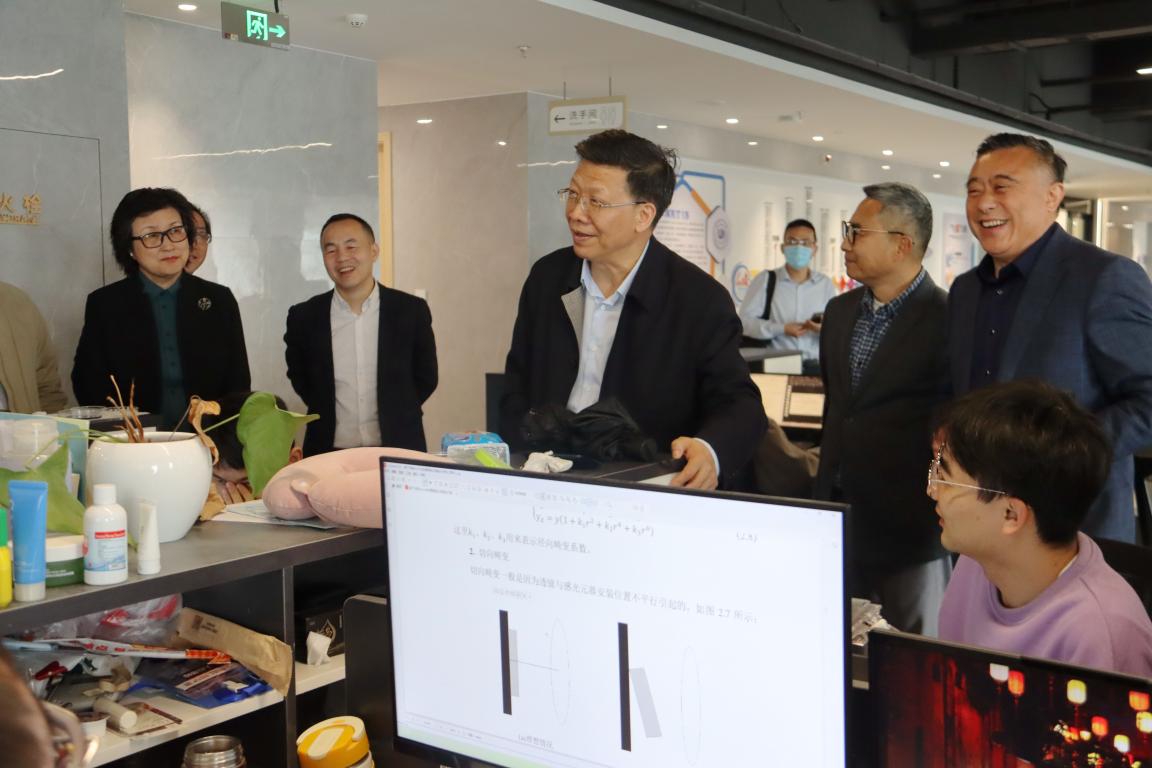 陈根芳一行认真听取了激光基地在党建共创校企全面合作、一体两翼协同创新创业、围绕产业链布局创新链、英才汇聚构建科创平台、产教融合打造双创生态、破壁创新结出丰硕成果以及师生创新创业等方面的汇报,随后参观了基地实验中心,详细询问了激光基地在发展过程中存在的困难。调研过程中,陈根芳还与学生亲切交谈,了解他们在校学习和生活的情况。