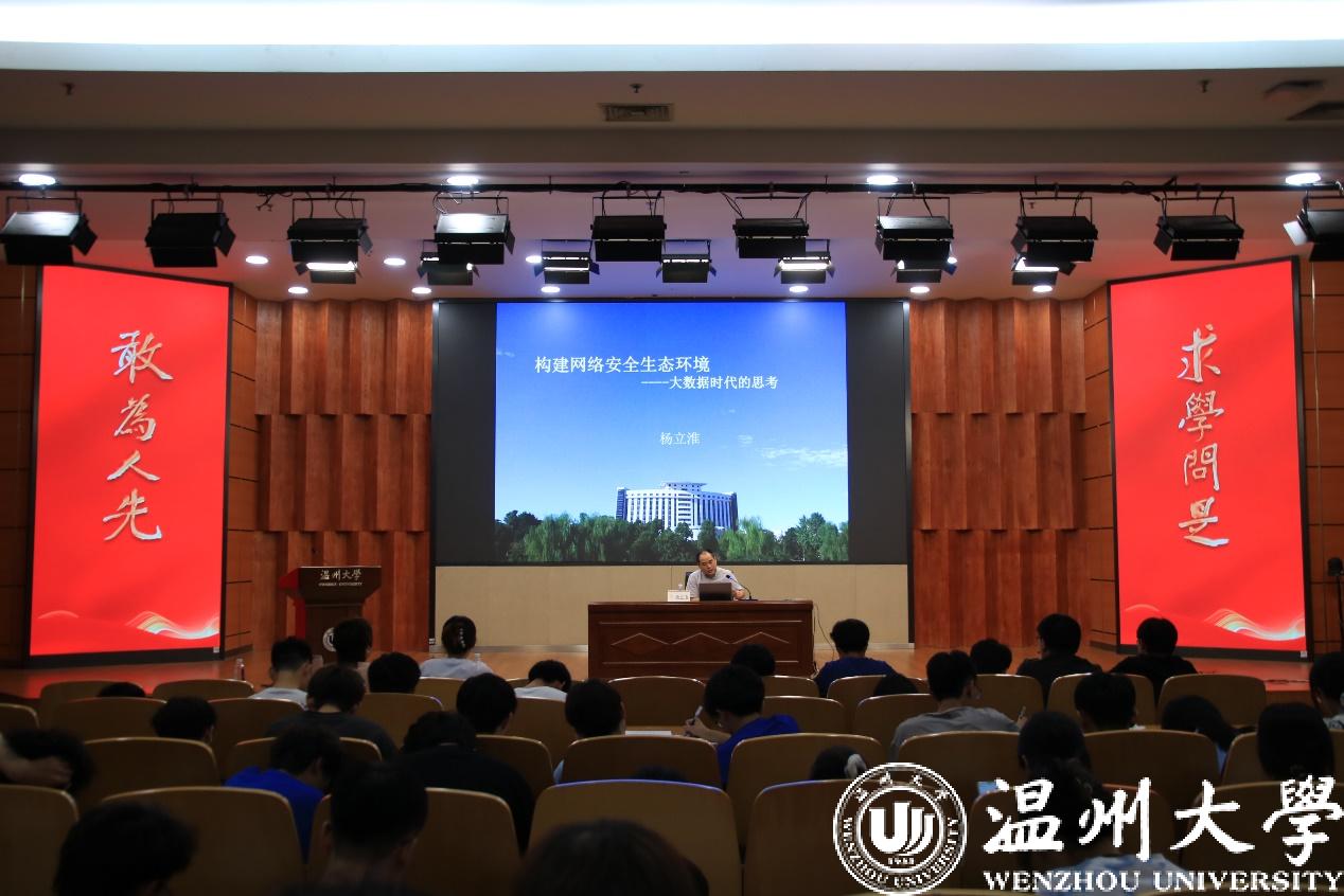 第二场讲座由杨书记主讲《构建网络安全生态环境—大数据时代的思考》。在讲座中,杨书记指出互联网是一种创新的技术,是一种文化的载体,同时也是一种经济的动力。当今世界步入了大数据时代,数字经济快速发展,深刻改变着社会生产生活方式,我们应顺应发展潮流,让互联网为我所用,而不是沦为“奴隶”被其支配生活。并从不同的角度举例,介绍互联网安全的现状和挑战,强调既要利用好互联网这个平台,提高自身的知识水平和创新能力,也要遵守好互联网的规则,维护好网络空间的秩序,为建设网络强国贡献力量。