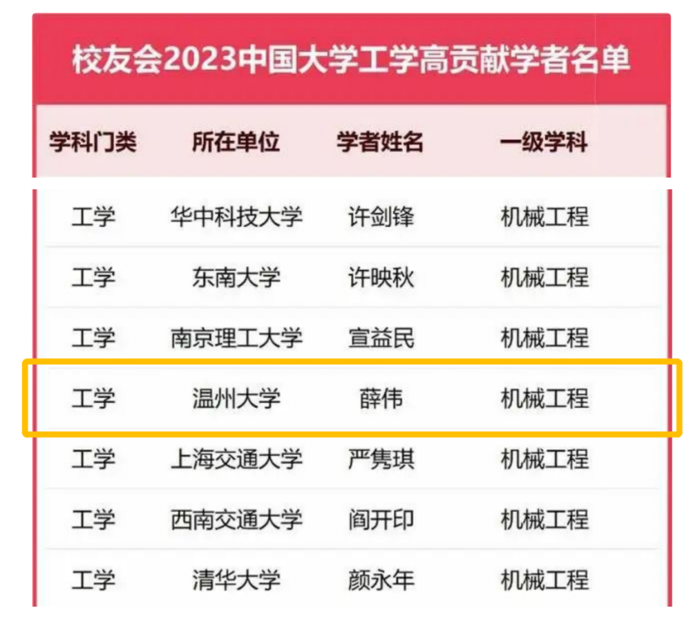 近日,全国第三方大学评价机构艾瑞深校友会网最新发布校友会2023中国高贡献学者完整名单,全国高校共有6917名杰出学者入选,分布在524所高校,涵盖12个学科门类的98个一级学科,我院激光基地薛伟教授入选工学门类机械工程学科名单。