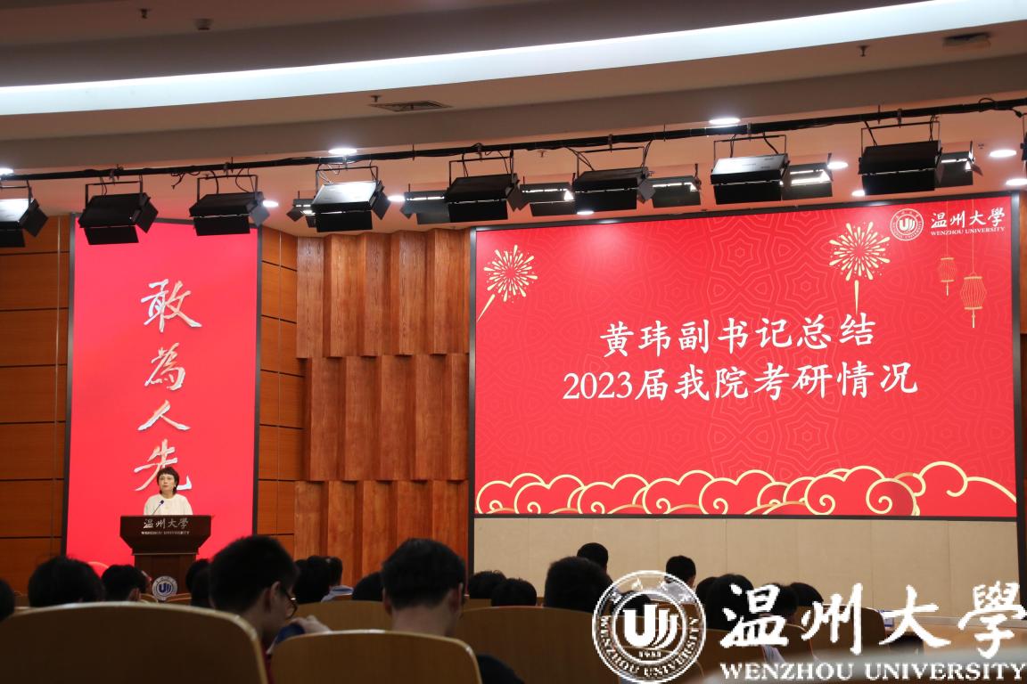会议伊始,我院党委副书记黄玮老师对2023年加拿大28预测 的考研情况进行总结。我院考研升学率连续两年突破40%,离不开升学办公室教师团队、学工办辅导员团队、班主任们的全心付出,总结了一年来我院开展的二十余项考研帮扶活动。肯定了机电学子们近一年备考的努力和付出,学霸宿舍、退伍大学生、考研搭子等榜样的力量,振奋人心,他们的成功经验为学弟学妹们起到了示范性作用。同时,表达了对上岸学子们的殷殷祝福,希望他们能在追梦路上,将“求学问是、敢为人先”的校训融入日常生活中,在担当中历练、在尽责中成长。