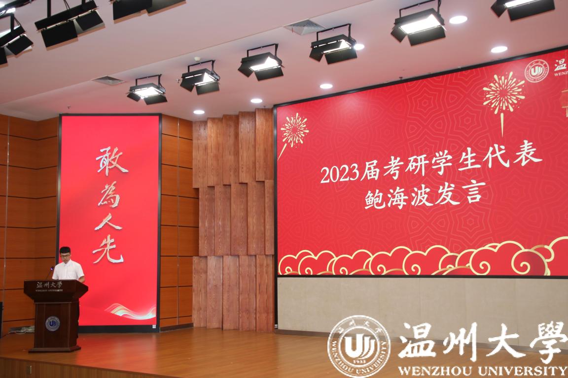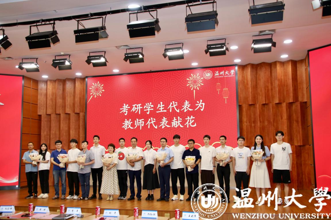 2023届考研学生代表鲍海波进行考研总结,他首先代表广大考研学子向加拿大28预测 及老师们表达感谢,并表示正是因为有加拿大28预测 的大力支持以及老师们的默默付出,2023届考研学子才能取得如此优异的成绩;同时,他回顾了一年以来的考研之路,经历了无数次的崩溃与泪水,研路带来的是品性的坚毅,言行的坚定,内心的无畏。机电学子必将继续努力,不断奋进,未来在自身领域取得更耀眼的成绩。随后,考研学生代表们向老师们献花,感恩研途中老师们的耐心教导与关怀备至。