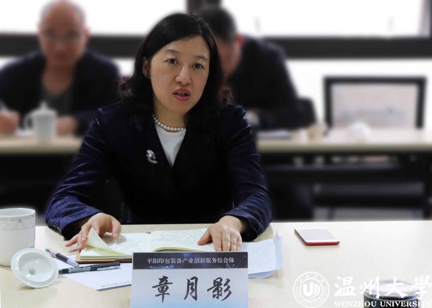 4月14日上午,温州市科技局局长章月影、科技合作处处长胡中坚、农村处处长刘广臻等一行来温州大学平阳研究院进行平阳印包装备产业创新服务综合体建设工作调研。平阳县县委常委、副县长陈杰,科技局局长周春珍、副局长梁奕闯、副局长林立华及研究院院长李峰平等陪同。