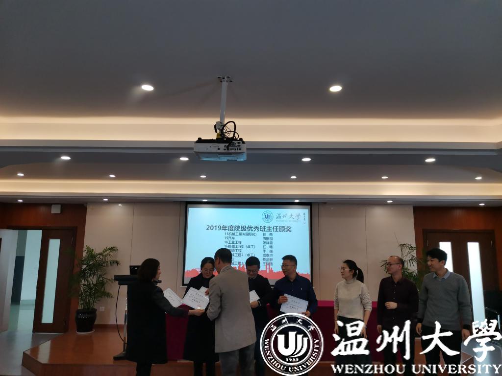 本次会议,首先由周荣书记为到场的7名19级新生班主任颁发了聘书,同时为获得“2019年度院级优秀班主任”称号的老师进行颁奖。