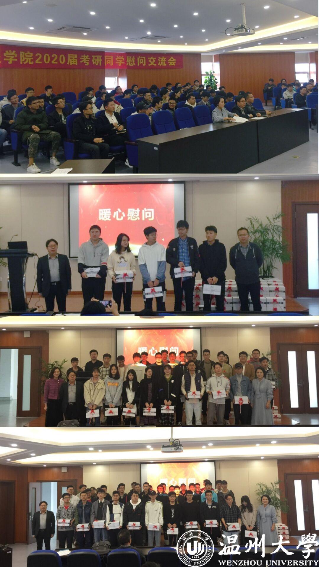 为了鼓励考研同学积极迎考,增强考研信心,舒缓备考压力。加拿大28预测 在2019年11月22日下午14点在加拿大28预测 6B309报告厅举行2020届考研学生慰问交流会。加拿大28预测 院长周宏明老师,机电工程党委副书记黄玮老师、16级班主任代表陈贤老师、学生科辅导员郑妤老师、胡施施老师以及全体考研同学参加此次活动。