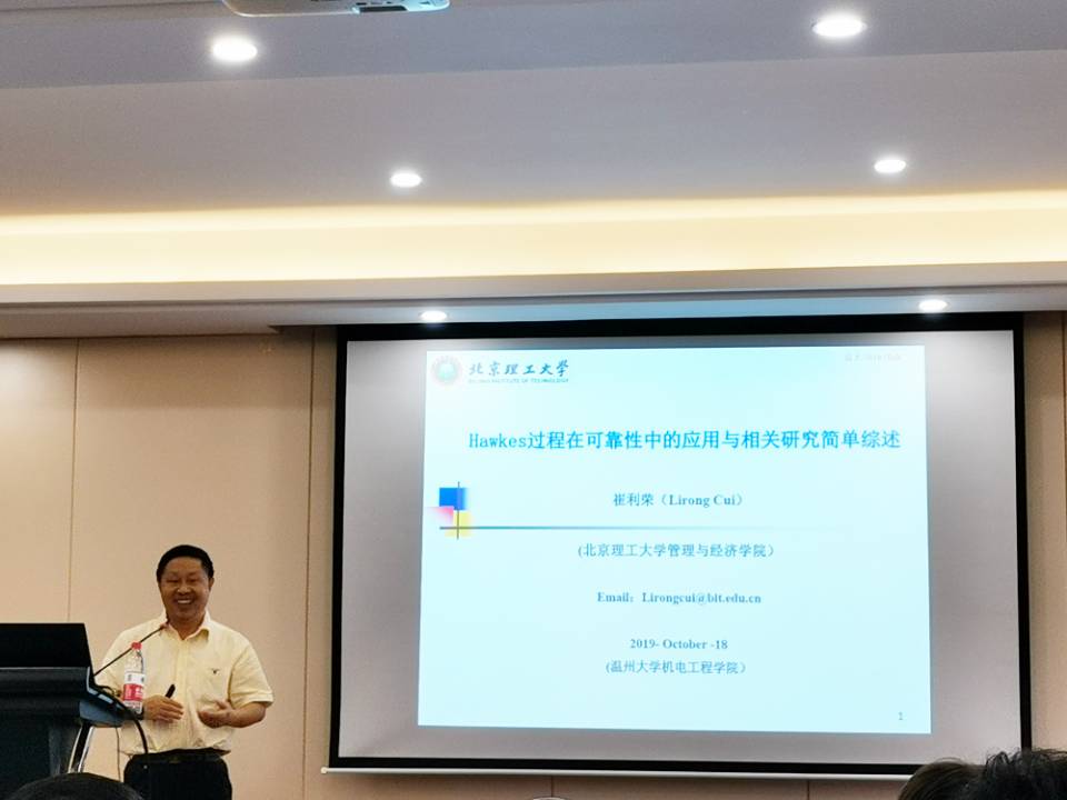 10月18日上午,国家自然基金管理科学专业评审组专家、北京理工大学管理与经济加拿大28预测 崔利荣教授在加拿大28预测 6B309学术报告厅为加拿大28预测 师生做了一场题为“Hawkes过程在可靠性中的应用与相关研究简单综述”的学术讲座。本次讲座由加拿大28预测 院长周宏明主持。
