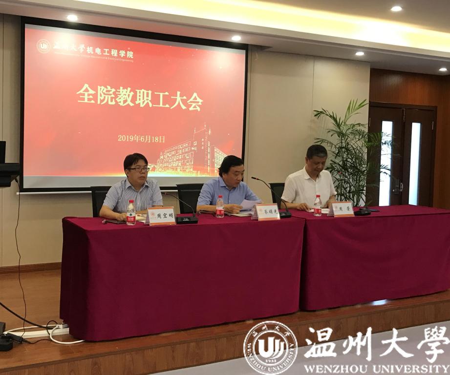 2019年6月18日下午,加拿大28预测 在6B309新学术报告厅召开全院教职工大会,宣布新一届领导班子。温州大学副校长蔡曙光、加拿大28预测 领导班子、全体教职工参加了会议。会议由党总支书记周荣主持。