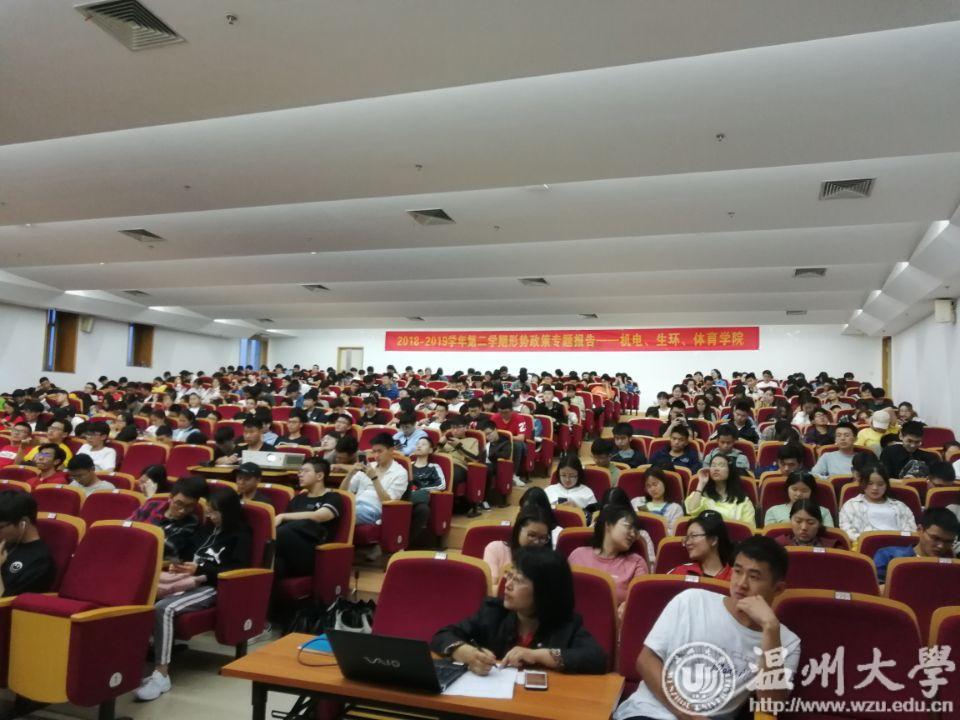 2019年5月28日18:30,加拿大28预测 、生命与环境科学加拿大28预测 、体育加拿大28预测 在温州大学步青厅共同开展了2018-2019学年第二学期形势政策课。本次特别邀请了马克思主义加拿大28预测 张小燕教授为三个加拿大28预测 的同学开展《红色文明在瓯越》主题的形势政策报告讲座。