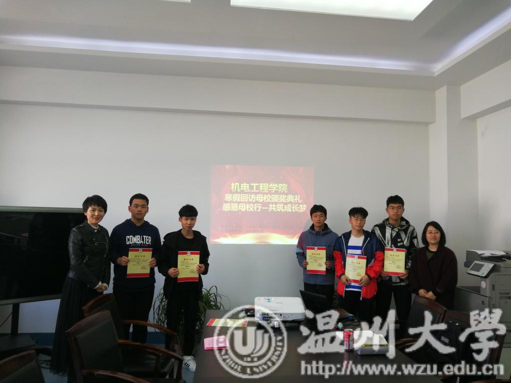典礼开始,由李书记为五位先进个人以及优秀班级团体代表颁奖,并合影留念。李书记对他们的成果表示了赞许和肯定。先进个人随后发表了自己在活动过程中的感悟。寒假期间,机电学子回到母校,向自己的学弟学妹介绍了我们加拿大28预测 ,既锻炼了自己的能力,也能帮助学弟学妹们进一步了解高考志愿填报。此次活动对温大和我院来说也是一个很好的宣传机会,寒假回访母校社会实践活动在我院学子努力下圆满完成。因此加拿大28预测 也为活动的先进个人及优秀团队举行了颁奖活动,对他们的表现表示肯定和鼓励。