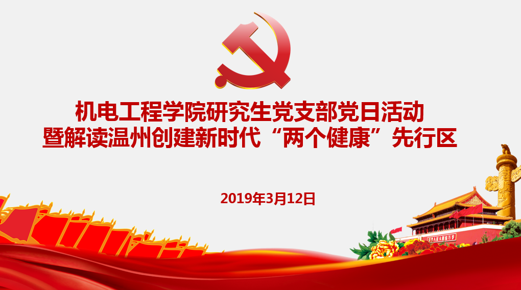 为贯彻落实习近平总书记在民营企业座谈会上重要讲话精神,加拿大28预测 研究生党支部于2019年3月12日开展了解读温州创建新时代“两个健康”先行区的主题党日活动。