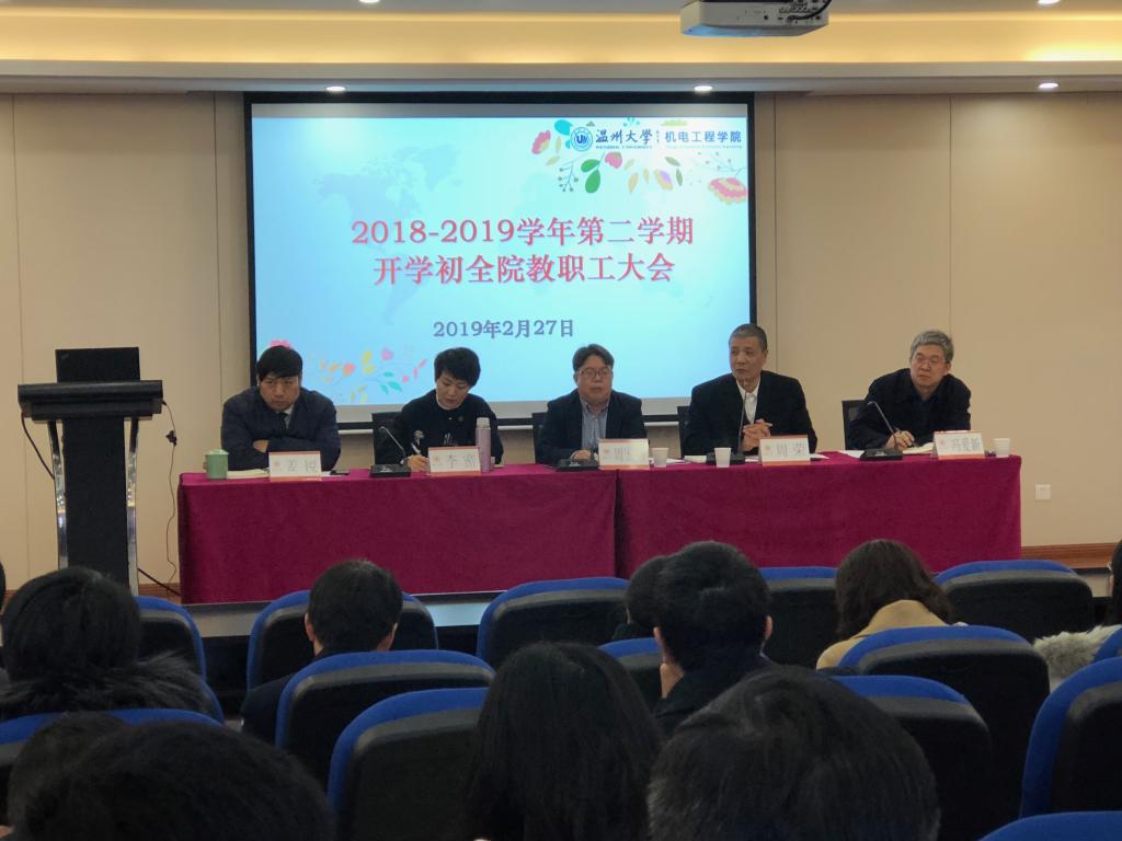 2019年2月27日下午,加拿大28预测 在6B309新学术报告厅召开2018-2019学年第二学期开学初全院教职工大会。加拿大28预测 领导班子、全体教职工参加了会议。会议由周荣书记主持。