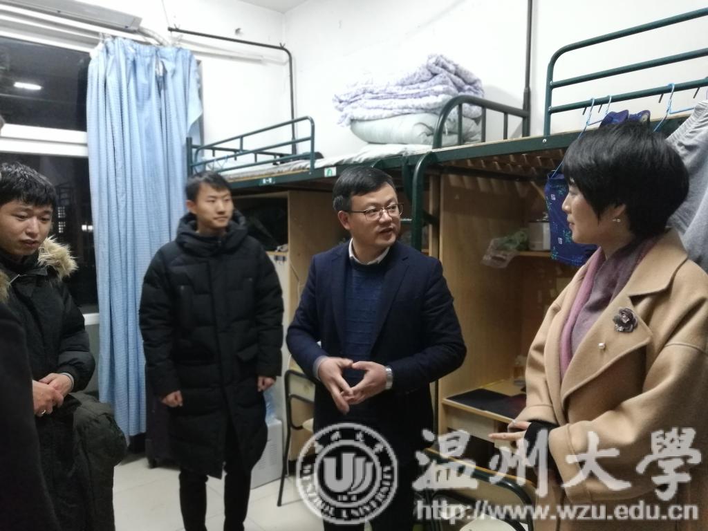 老师们分别走访了大一到大四部分寝室,同学们有的刚刚到校,正在整理物品,有的说说笑笑谈论着各自的寒假生活,有的已经在预习课本内容。老师们的到来让同学们感受到殷殷关怀。老师们与同学们进行积极的交流,仔细询问每位学生的实习情况与学习情况,更是对于毕业生提出的一些问题进行耐心的解释。李密书记叮嘱大家一定要调整好状态,拿出饱满的精气神来迎接新的学期。