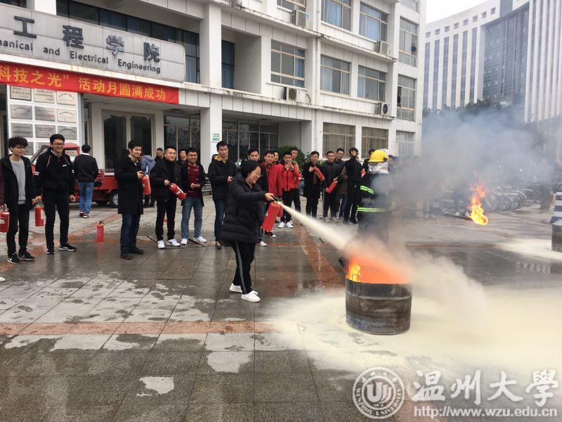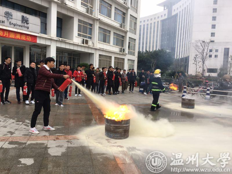 消防安全讲座后,我院师生进行了灭火器使用的消防演练。每一位同学都动手操作,学会如何使用灭火器,如何才能有效的在最短的时间内将火扑灭。