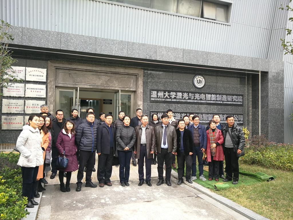 院长联席会结束后,在姜锐副院长的陪同下,参会人员到温州市海洋科技创业园参观了温州大学激光与光电智能制造研究院,研究院马光院长详细介绍了地方研究院的运行模式、建设举措和近期建设成效,参会人员对于温州大学产教融合的办学模式给予了高度赞扬。