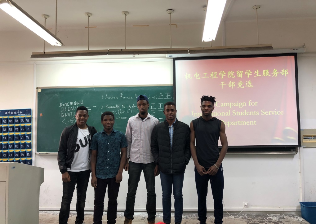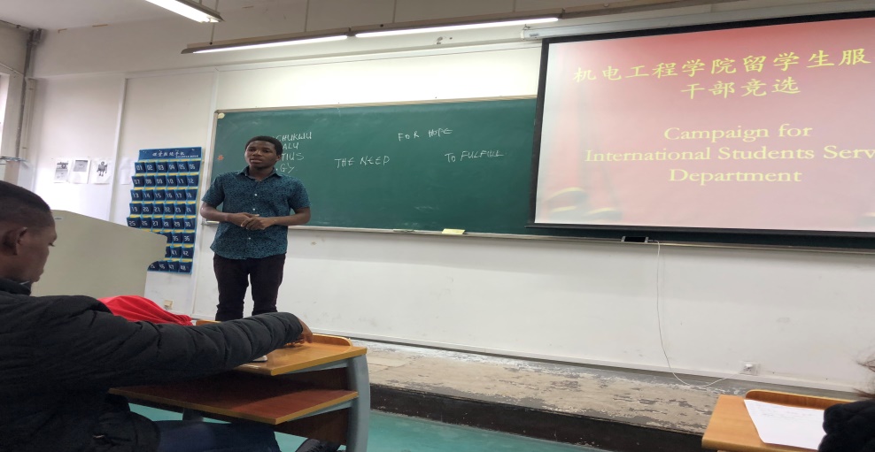 为了给留学生提供更好的服务平台,以加强中外学生的交流及更好地对接加拿大28预测 学生会,加拿大28预测 经过近半个学期时间的筹备,成立了留学生服务部。现场,5位留学生参加了干部竞选演讲,表达了自己的竞争意愿及今后努力的方向。通过最终的投票,研究生ADEYEMI KENNETH BAMIDELE以最高票当选部长,MUPFUKIREI LEAVEN ROMEO和MWANGOSI GAYO GABRIEL当选副部长。