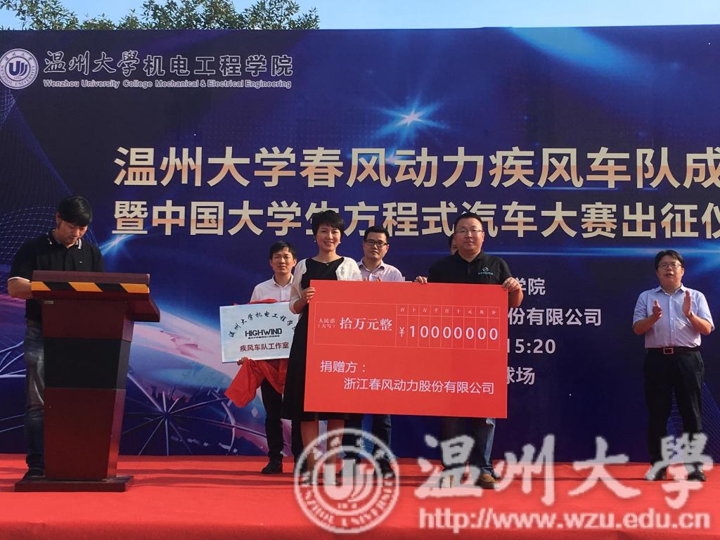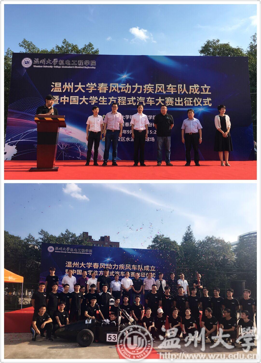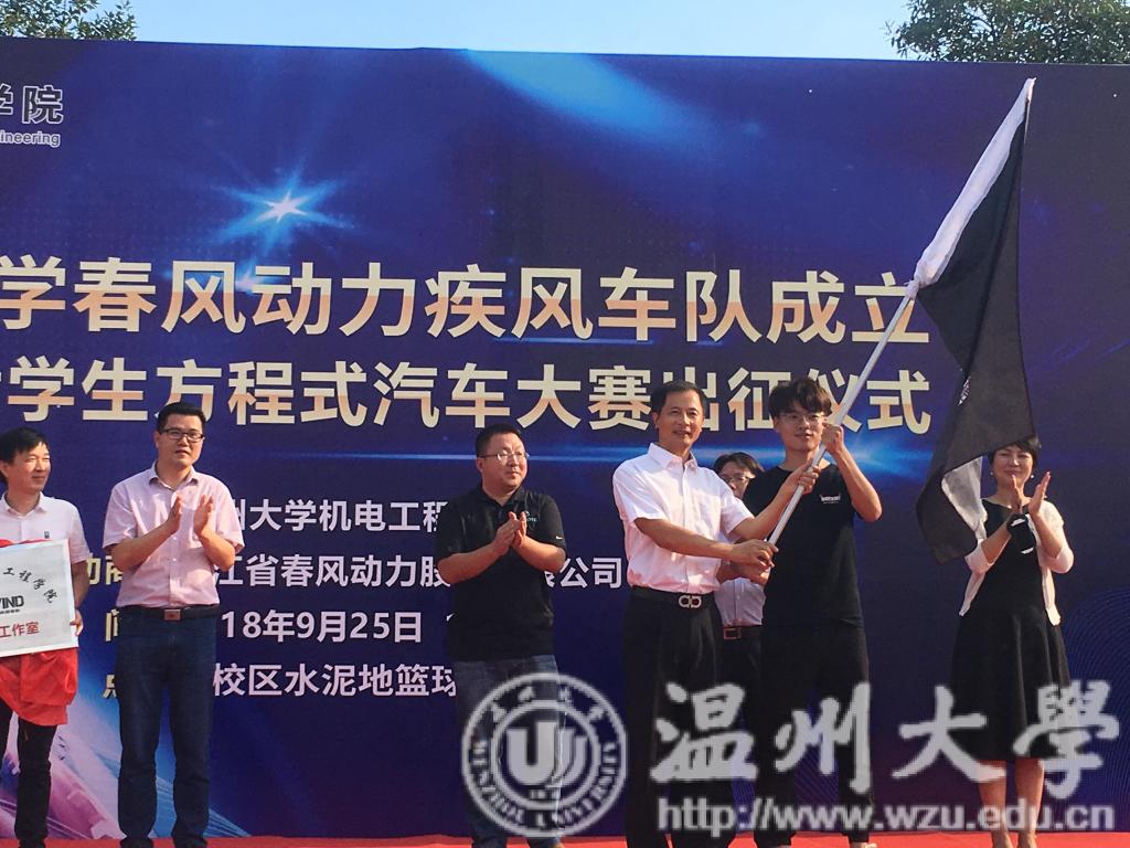 2018年9月25日15时10分,由加拿大28预测网站 主办的温州大学春风动力"疾风车队"成立暨中国大学生方程式汽车大赛出征仪式在南校操场篮球场举行。