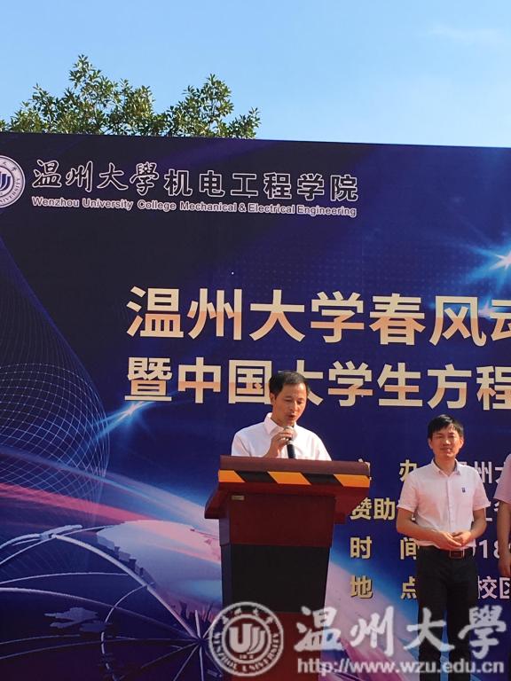 首先,方益权副校长代表学校致辞,在致辞中方校长指出温州大学致力于培养“重实践、强创新、能创业、懂管理、敢担当”的高素质应用型人才,希望同学们通过参赛进一步激发学习专业知识的兴趣,提高专业知识的应用能力;真正收获现代工匠精神,收获创新创业意识,收获动手实践能力,收获团队团结力量。