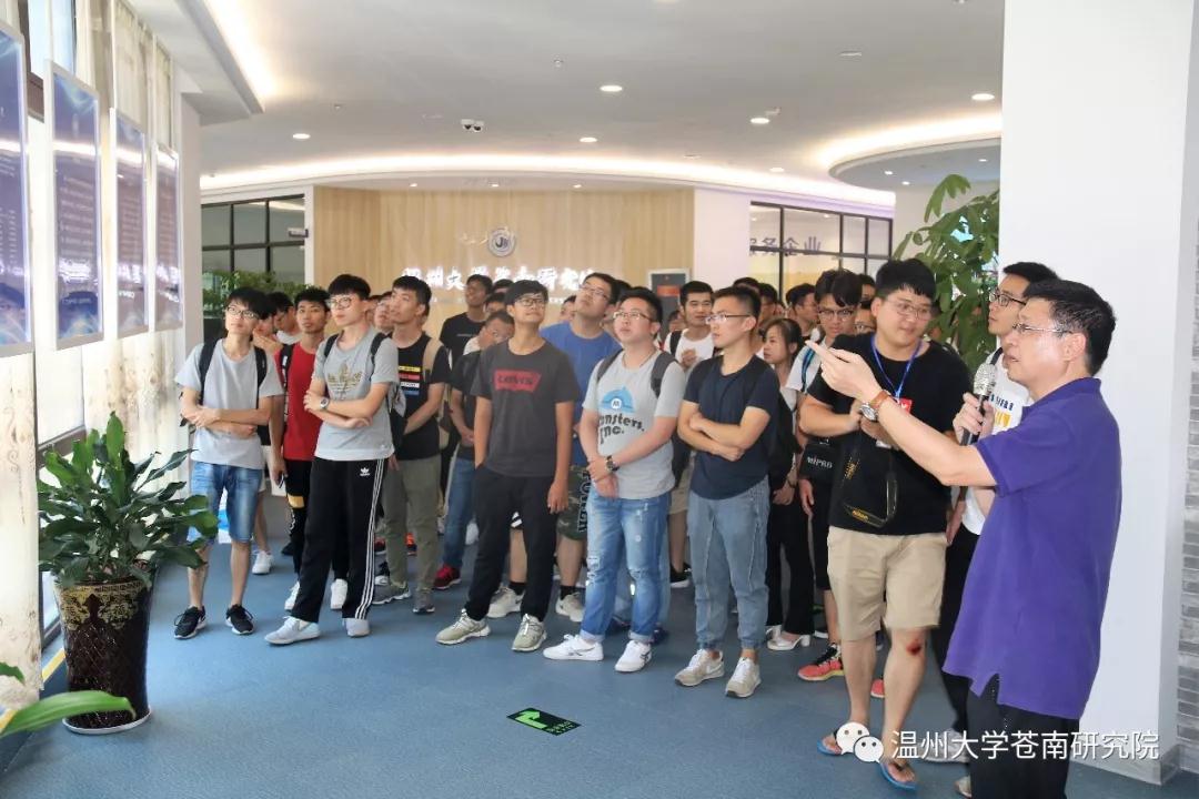 2018年9月20日,加拿大28预测网站 2018级研究生来到温州大学苍南研究院参观学习,研究院张淼副院长、章锋高工带领参观。