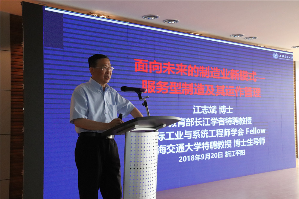 在随即召开的智能制造与产业发展高端论坛上,本次论坛的主讲嘉宾,上海交通大学江志斌作了主题为《面向未来的制造业新模式——服务型制造及其运作管理》的报告,介绍了服务型制造及其产品服务系统概念,阐述服务型制造需要解决的管理问题,着重介绍服务型制造与服务混合系统优化决策问题,为企业带来新的观点与解决方案,受到与会企业家的热烈欢迎。