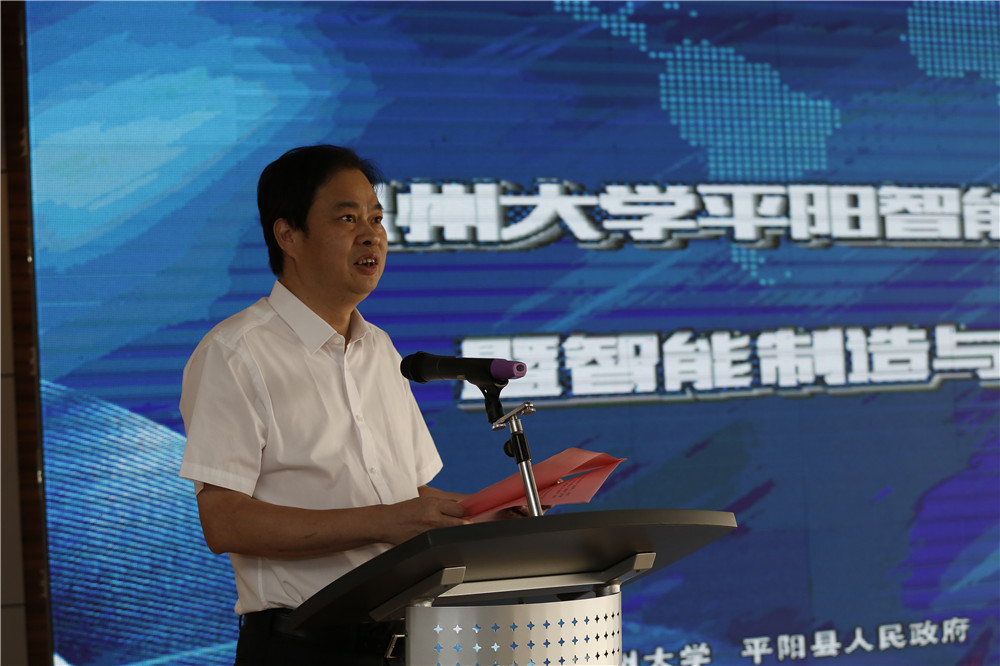 邵潘锋代表温州市科技局表示祝贺。他表示,温州大学平阳智能制造研究院的建设,是地方联合本土高校开展政产学研合作的有效途径,对于推动企业两化深度融合、推动产业技术创新具有重要作用。研究院的建设为平阳科技创新团队打造、科技成果转化提供了平台支撑。他希望,通过政校企三方的共同努力,政校合作、校企合作项目能够得到顺利实施,科技创新成果转化进一步加快。