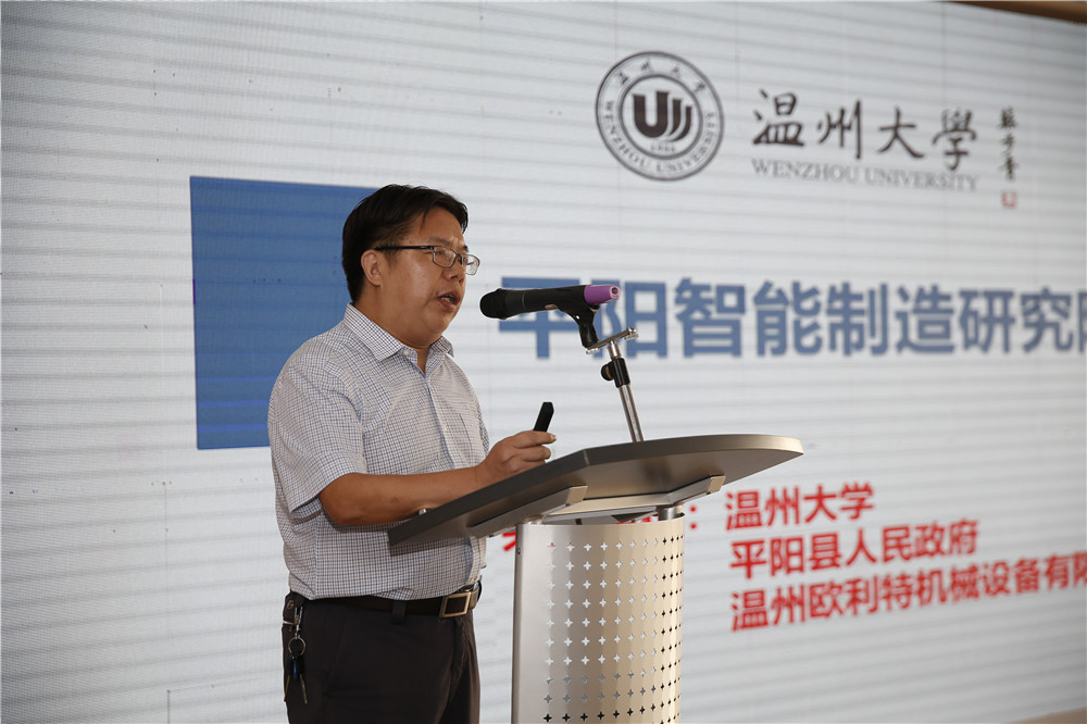 9月20日上午,温州大学平阳智能制造研究院启动仪式暨智能制造与产业发展高端论坛在平阳县万全镇万全轻工业园区国望集团隆重举行,由温州大学、平阳县人民政府、温州欧利特机械设备有限公司合作共建的“温州大学平阳智能制造研究院”在平阳万全轻工业园区正式投入使用。