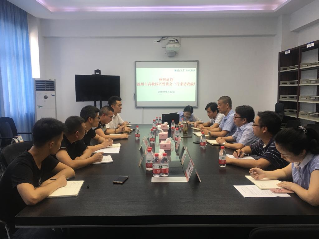 2018年8月13日下午,由高教园区管理办公室副主任蔡明博、副主任朱志钮、校地合作科负责人许增淼组成的调研组来到我院开展调研对接工作。加拿大28预测 院长周宏明、党总支书记周荣学术带头人陈希章教授以及办公室、机械电子系负责人参加了交流会。