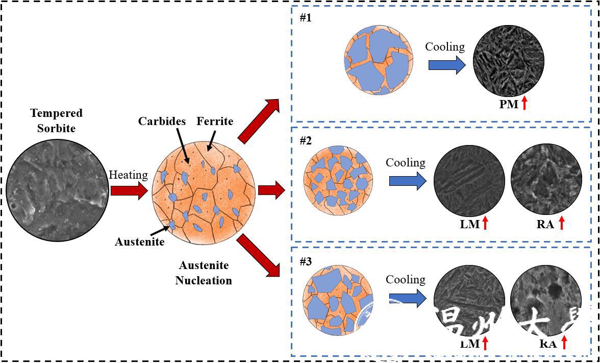近日,机械工程领域重要国际学术期刊International Journal of Advanced Manufacturing Technology(IF:3.32)在线刊登题为“Effects of laser energy density on carbide dissolution, element distribution and microstructure evolution of AISI P20 steel during laser surface quenching”(DOI:10.21203/rs.3.rs-375133/v1)的最新研究成果,论文第一作者为我院车辆工程2016级本科生李卓原同学,通讯作者为张健副教授。该研究主要针对工业模具易失效问题开展的系统性研究,在李卓原同学前期采用激光相变硬化工艺对预硬化AISI P20钢表面进行强化的基础上(DOI:10.1016/j.optlastec.2019.105852),本研究进一步探讨了相变过程中碳化物的熔解/烧蚀、微合金元素的扩散及残余应力分布特征,阐明了强化层关键碳化物熔解/烧蚀机理与组织演化规律,为模具钢的激光表面工程化提供了重要的理论与技术参考。